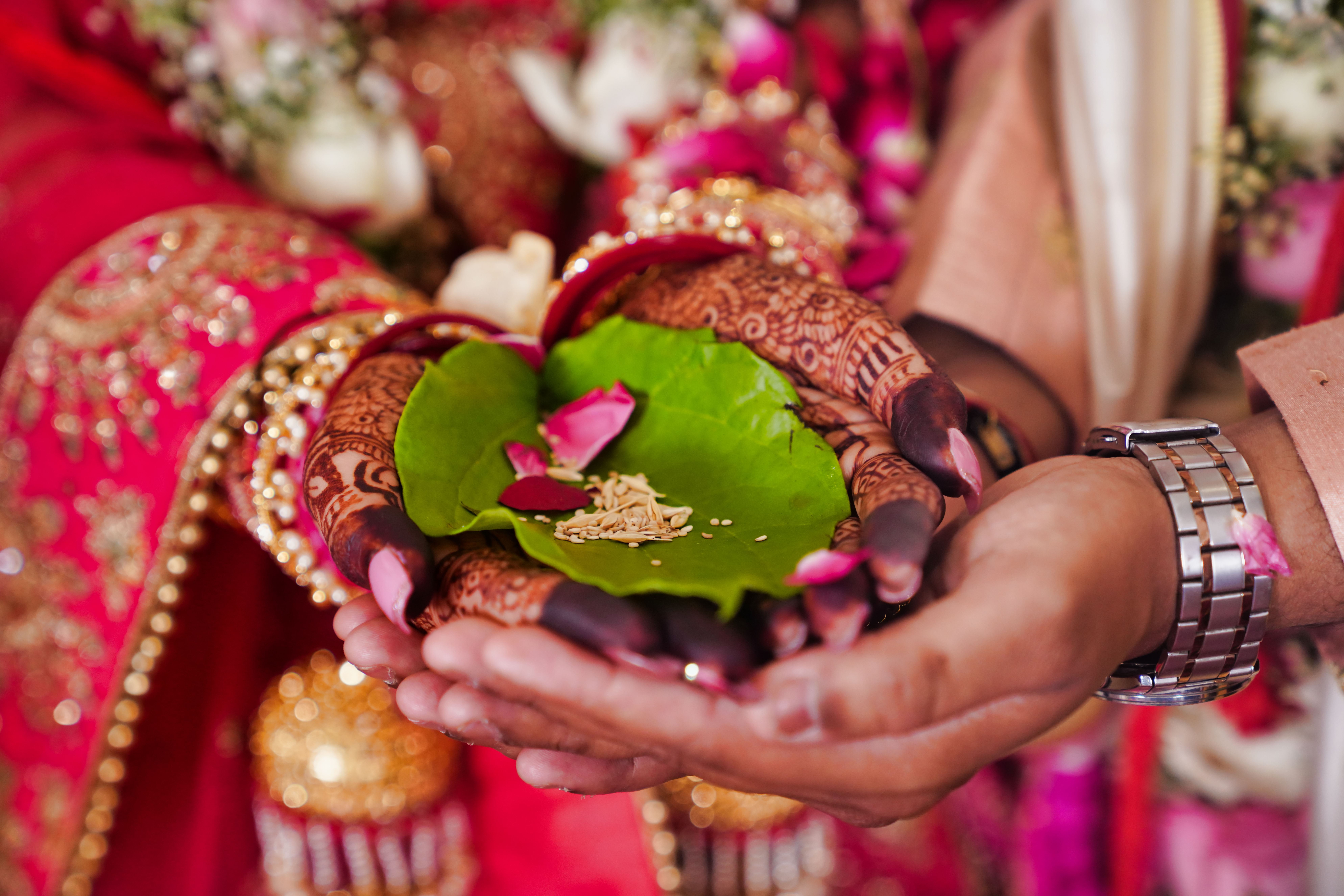 Picture of a traditional Hindu Indian wedding ceremony, showcasing some details. Photo Credit: Envato @wirestock