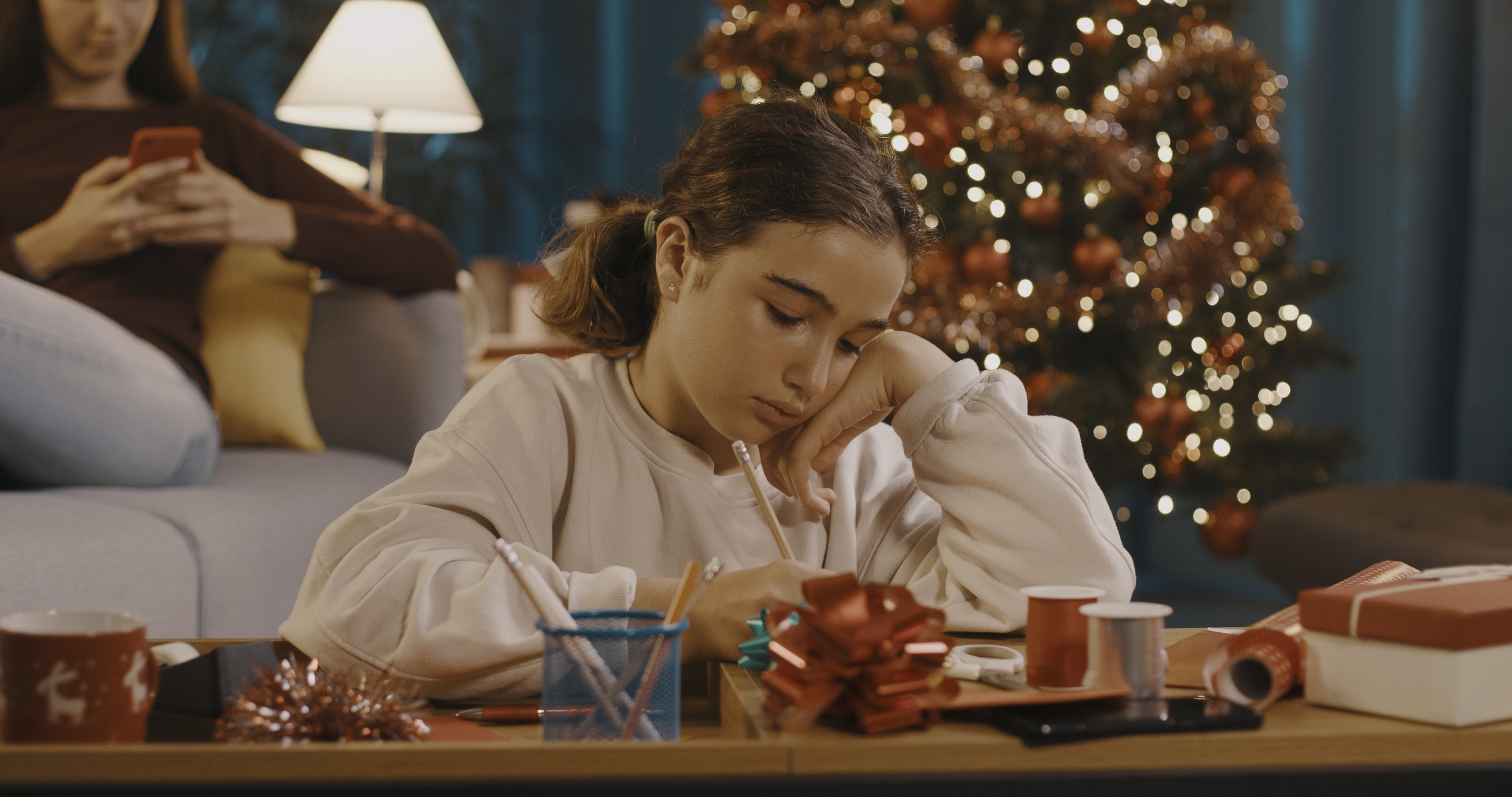 Cute girl writing a Christmas card at home. Photo Credit: Envato @stokkete
