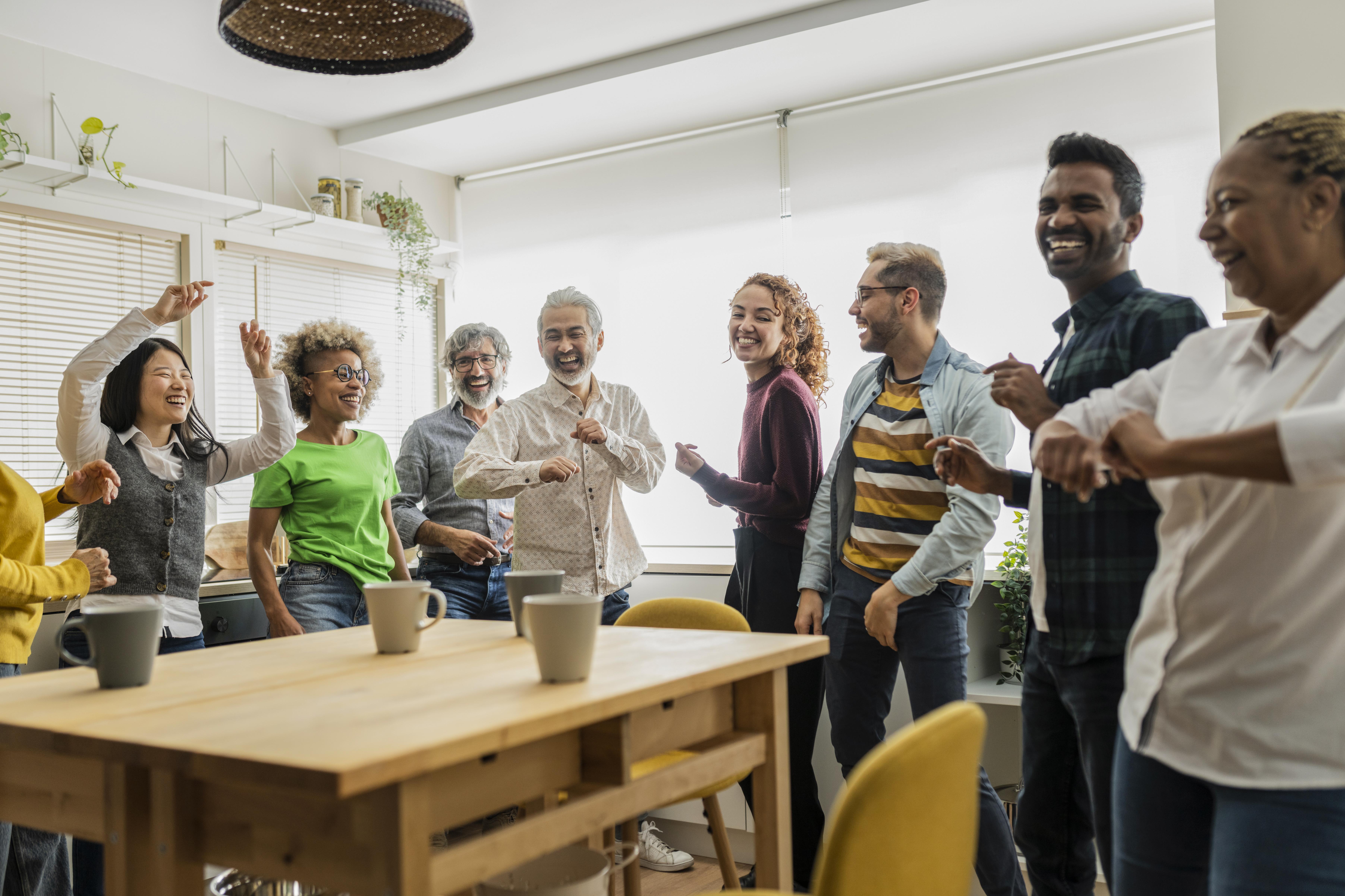 xuberant Team Engagement During Office Celebration. Photo Credit: Envato @josecarloscerdeno