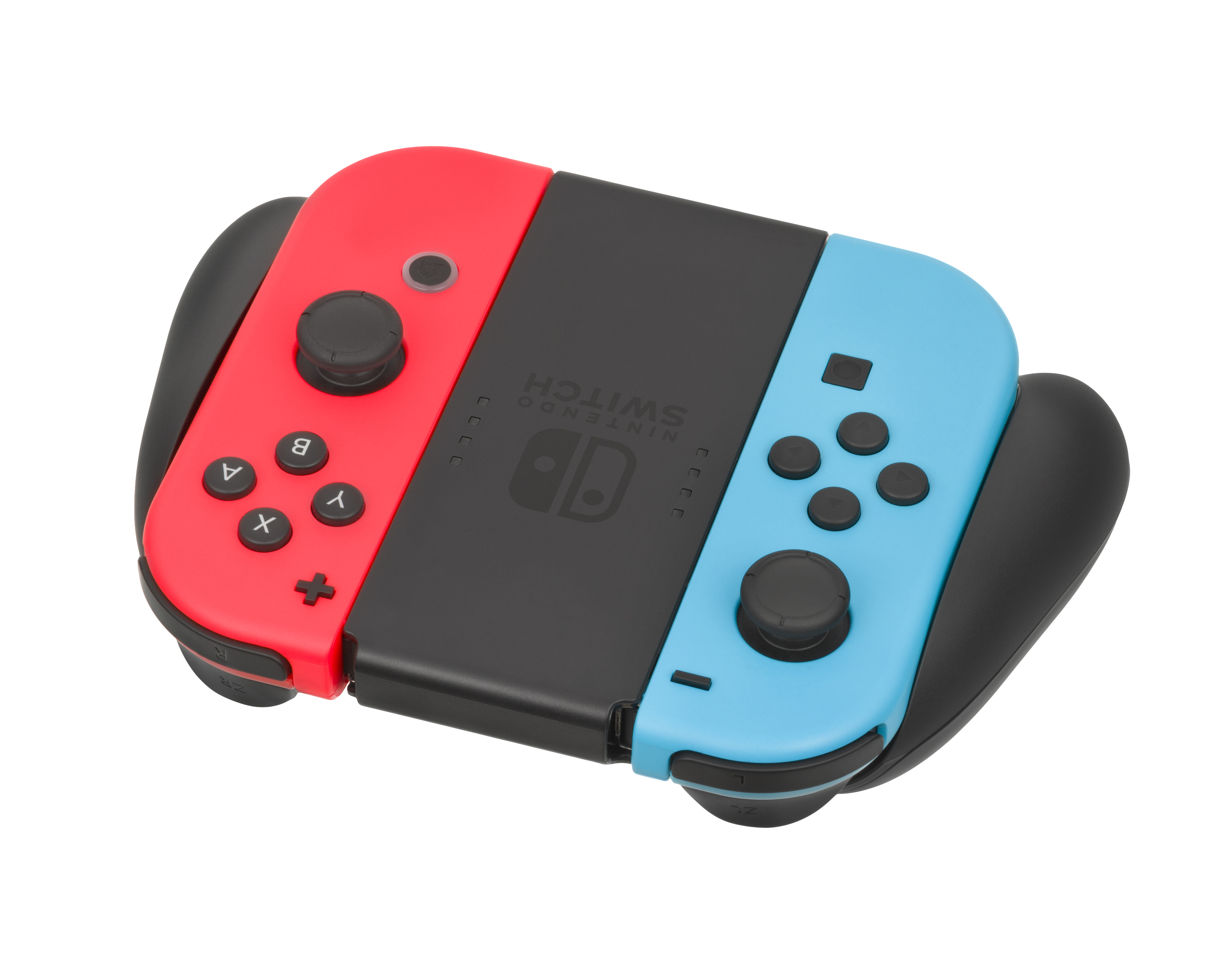 The Joy-Cons for the Nintendo Switch, a hybrid portable/home console released by Nintendo in 2017. They are shown here in the grip that is included with the console. Photo Credit: Wikimedia Commons @Evan-Amos