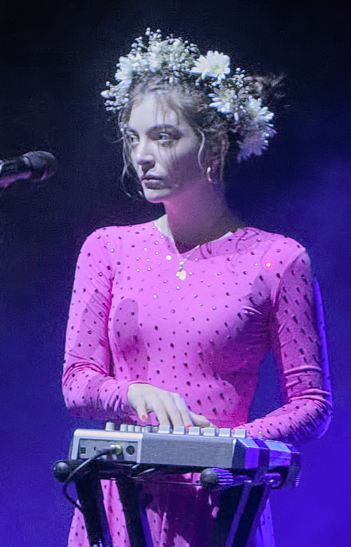 Lorde wearing a flower crown performing Loveless at the Riverstage in Brisbane Australia [23 November 2017], as part of the Melodrama World Tour. Photo Credit: Wikimedia Commons @DavidEye