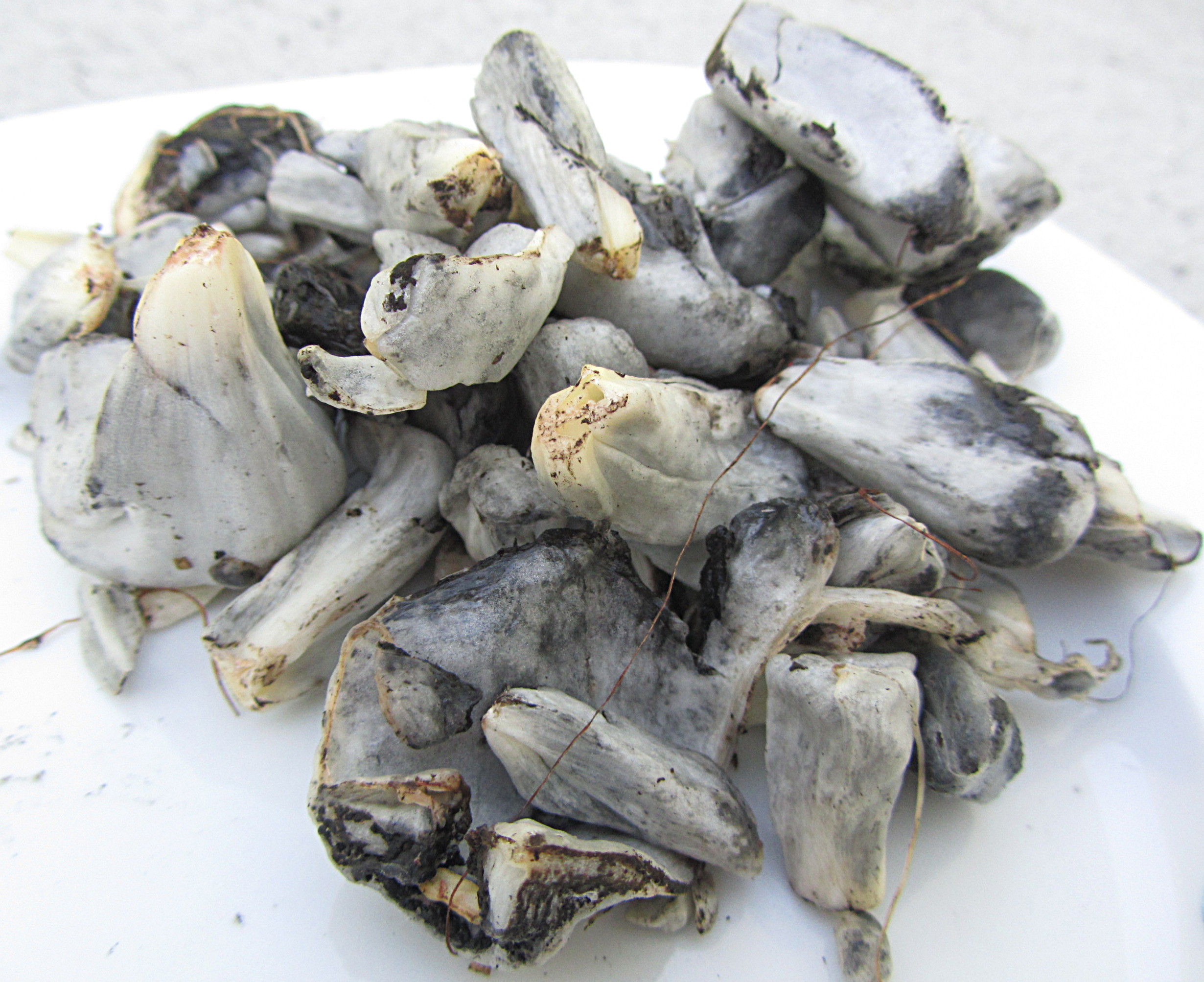 Huitlacoche (Ustilago maydis) bought from a tianguis (street market) in Mexico City. Photo Credit: Wikimedia Commons @Strobilomyces
